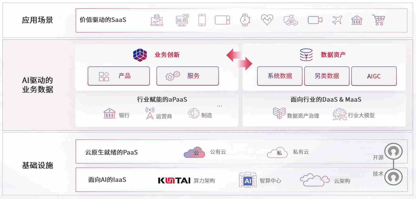 数字时代,,,围绕企业数字化转型的关键要素,,有钱钱包数码开创性的提出数云融合战略和技术体系框架,,着力在云原生、、数字原生、、、、AI原生和信创产业上架构产品和服务能力,,为处在不同数字化转型阶段的快消零售、、汽车、、金融、、、、医疗、、、、政企、、、教育、、运营商等行业客户提供泛在的敏捷IT能力和融合的数据驱动能力,,,,构建跨界融合创新的数字业务场景和新业务模式,,助力企业级客户建立面向未来的核心能力和竞争优势,,,,全面推动社会的数字化、、智能化转型升级。。